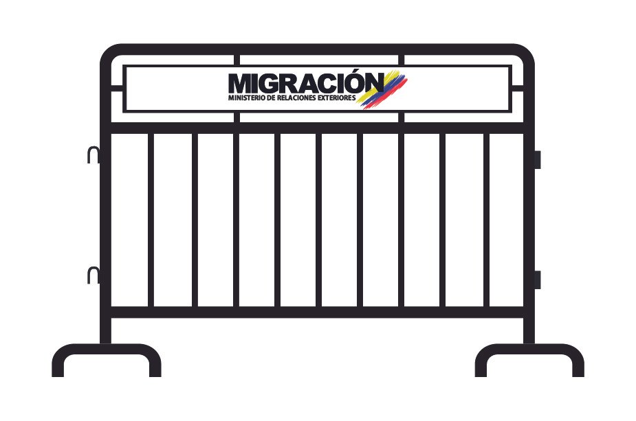 Tamaño 1.8mt ancho x 1,35 mt alto en tubo Agua Negra de 2 pulgadas calibre 14 redondo exterior. Gancho en U varilla ½ lisa y gancho para acoples con las otras vallas. 10 tubos verticales de 1 pulgada pintura esmalte negro, tablero de 60×40 cms centrado y patas fijas.